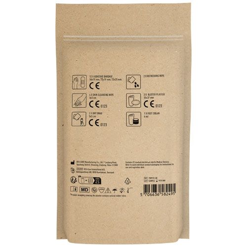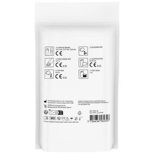 Ideal para personas que realizan a diario actividades como caminar, correr, jugar al golf, etc. Contenido: 12 apósitos resistentes al lavado, 4 bastoncillos para limpiar la piel, 2 toallitas refrescantes, 2 bastoncillos secos, 2 apósitos para ampollas y 1 gel para pies. Todos los productos de primeros auxilios y cuidado del kit cumplen con las normativas vigentes en la UE. El precio incluye impresión a todo color. Se entrega en una funda de papel. Materials : Papel certificado FSC Default print option : Impresión digital - frontal - max color : full colour - 100 x 120 mm Para este producto, el proveedor ha completado todo o parte de los datos GPSR. Para obtener más información, póngase en contacto con el proveedor.