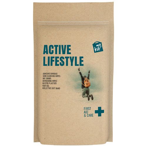"MyKit" Primeros auxilios para un estilo de vida activo en funda de papel.